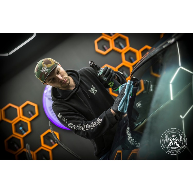 • Aplique o glass cleaner borrifando num pano de microfibra e lave a superfície (em grandes superfícies de vidro, aplique o produto diretamente com a pistola)