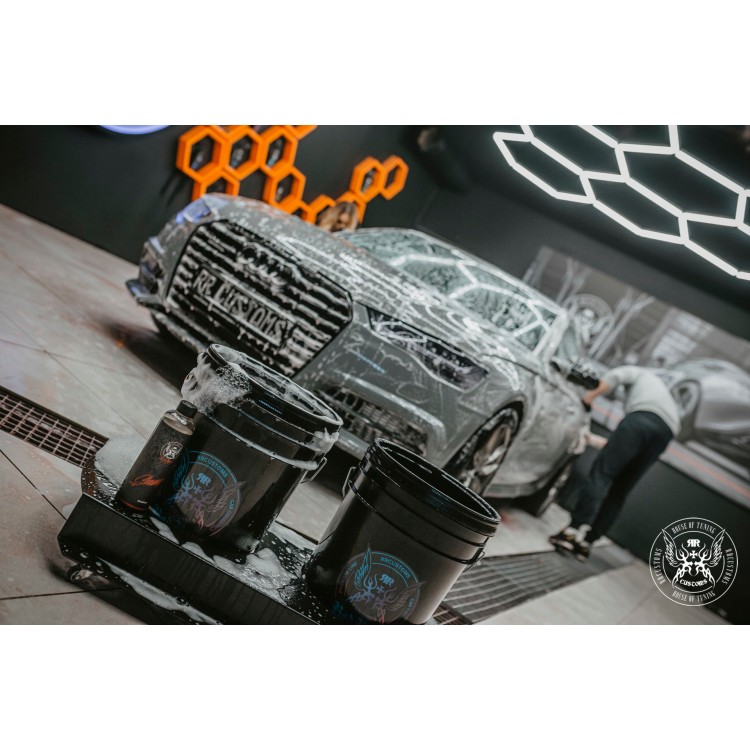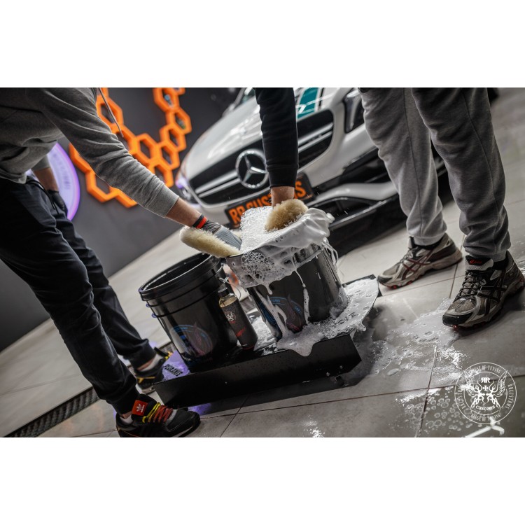 - recomendamos o processo de lavagem ‘dois baldes’, começando pelo tejadilho, descendo usando uma luva de lã RRC e baldes com separador