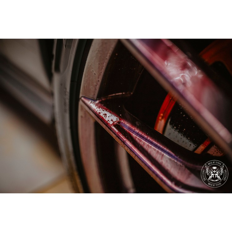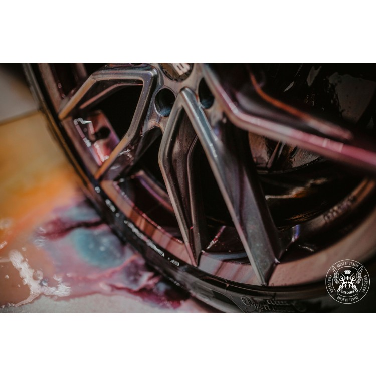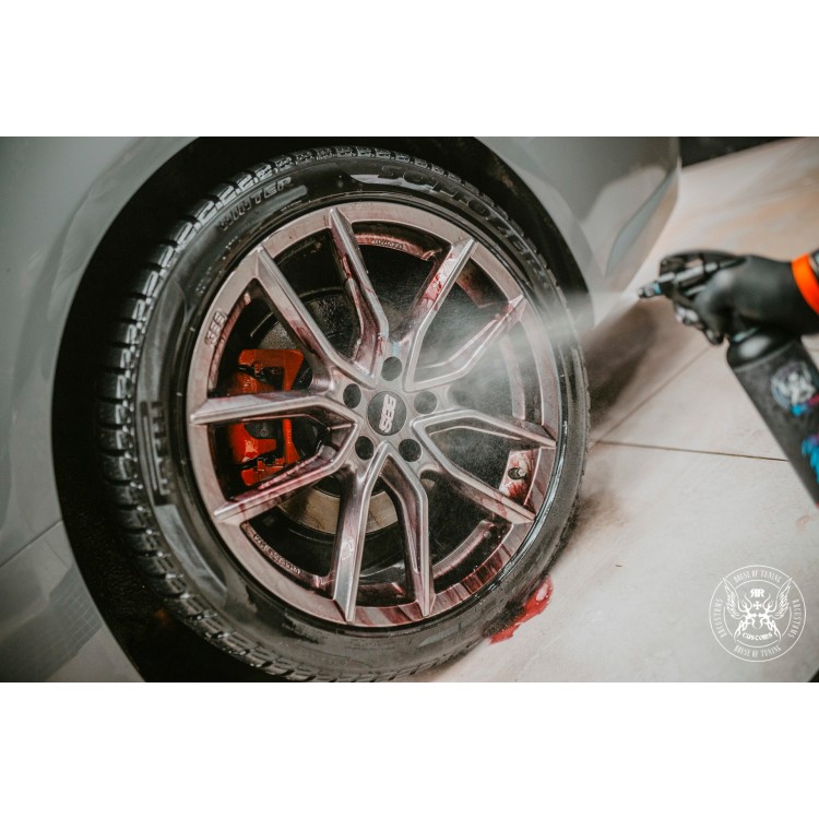 O produto reage fortemente com depósitos metálicos, o que resulta numa tonalidade de gel intensamente vermelha e sangrenta. Recomendado para jantes muito sujos.